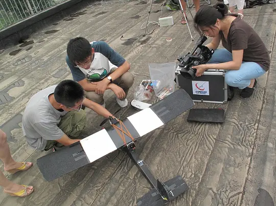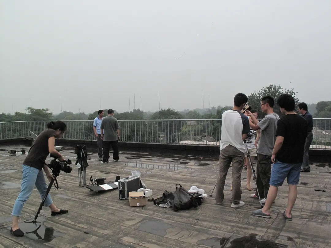 最后終于在網上看到一群清華大學的學生在做飛機模型試驗,攝制組決定把這幫孩子找來,“他們帶著墊著泡沫塑料、用牙簽和瓶子蓋綁著攝像頭的模型來了”,試驗要拍的是最后一集《我們的田野》里的最后一個故事:老北京張貴春和鄰居在自家平房屋頂上吃餃子。
