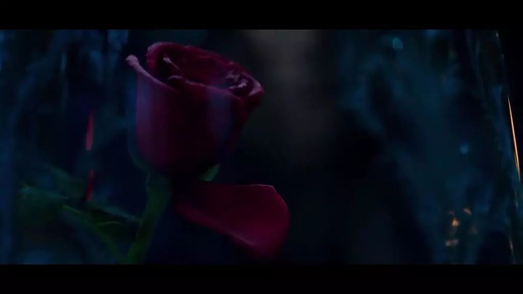 《美女與野獸》玻璃罩內的紅玫瑰,代表愛與生命。“野獸”即將死亡時切入玫瑰花,最后一個花瓣凋零,象征死亡。