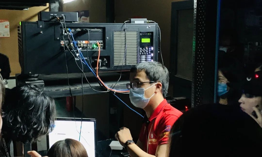 “放映時要先調(diào)整音響效果,確定是否是HDMI格式。操控盤一定要先解鎖再操作,最后一步,銀幕亮起,然后關(guān)閉影廳的燈光。”