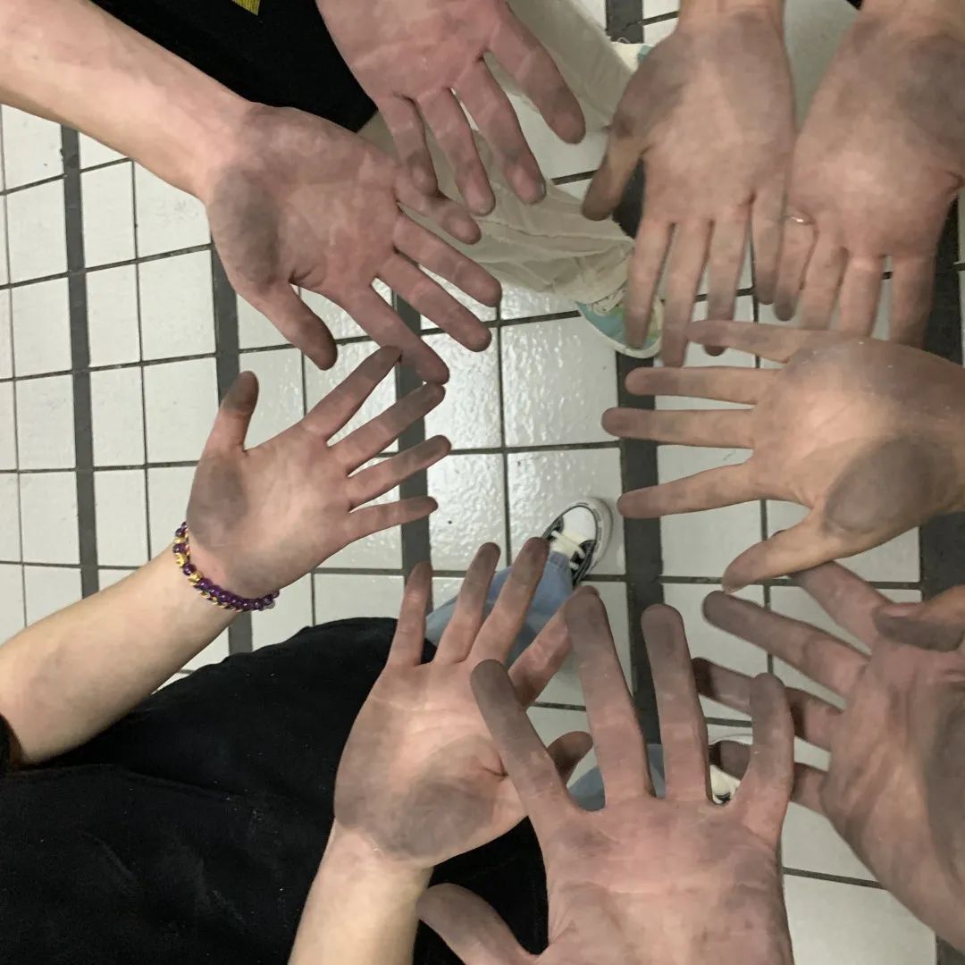 供給中心的志愿者,印象最深的一張工作“合照”是9只因為搬貨而變黑的手。