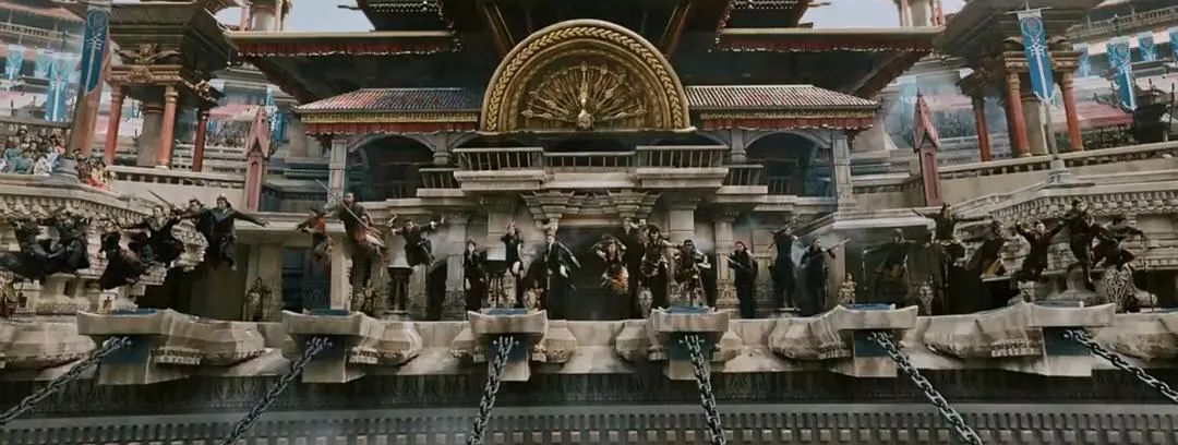 其次是游戲中的標志性地圖,改編為適應電影的場景。影片中,清源村、鳳凰城、獸王谷都是游戲玩家耳熟能詳的地方,不過為了增進影片的可看度,部分地點設置進行了調整。比如清源村,在游戲中僅僅是簡單的幾間屋子,這放在電影明顯分量不夠,所以更改為坐落在懸崖峭壁上。