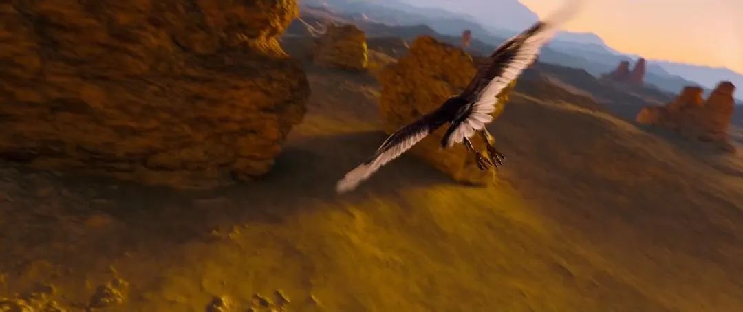 第二是用原創的技術精準表達細節。比如,為呈現老鷹從鳳凰城飛到清遠村的開篇鏡頭,MORE VFX自行開發了羽毛系統,逼真地制作出老鷹穿云駕霧、展翅翱翔的畫面。又比如,為呈現“競技場”的逼真感,拍攝了大量純CG和與實拍結合的鏡頭,運用特效破碎、坍塌、群集等元素的渲染,體現燒毀炭化后的效果。