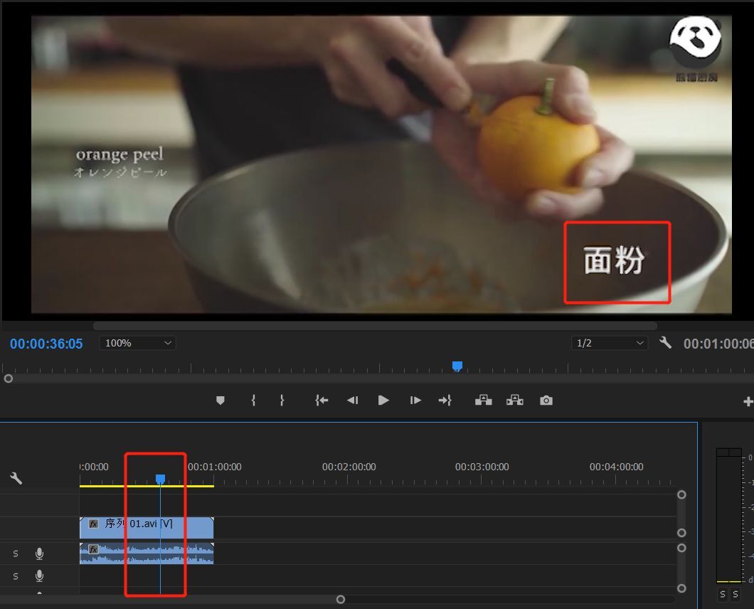 隨后將新建好的字幕遮幅拖入到v2軌道上,這樣就可以遮住視頻中的字幕了,出現(xiàn)了電影既視感。