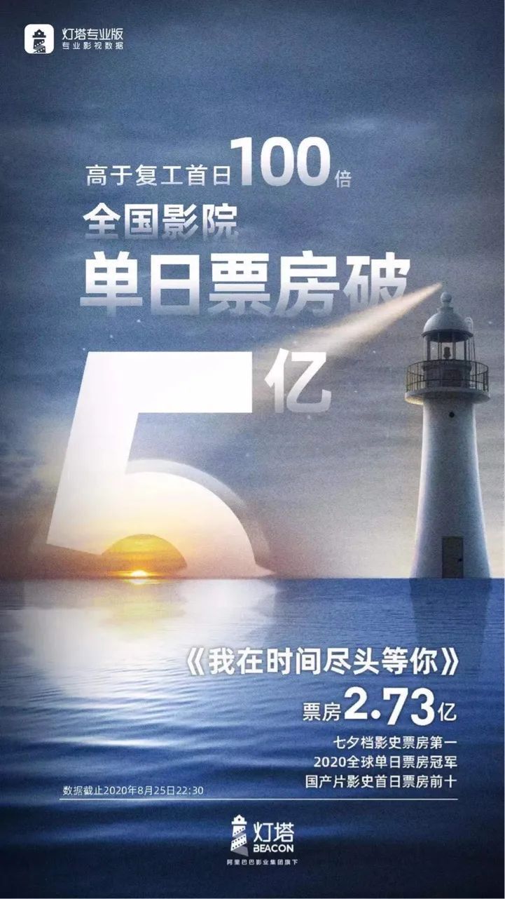 今年的七夕檔,《我在時間盡頭等你》給電影市場不小的驚喜,該片累計獲得2.78億元票房,強勢登頂檔期冠軍,并且成為2020年全國和全球電影市場單日票房冠軍。