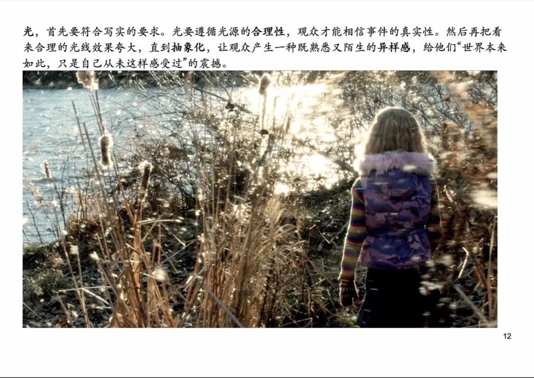 光明與黑暗是一個文學(xué)語言,但落實到具體就是:光線。攝影師最重要的工作就是對光的處理。不同的導(dǎo)演有不同的工作習(xí)慣,所以攝影師的工作是隨機(jī)應(yīng)變的。和不同的導(dǎo)演合作,會產(chǎn)生不一樣的變化。但無論和什么類型導(dǎo)演合作,光線都是交由攝影師進(jìn)行設(shè)計。所以在闡述里,首先要提到光。
