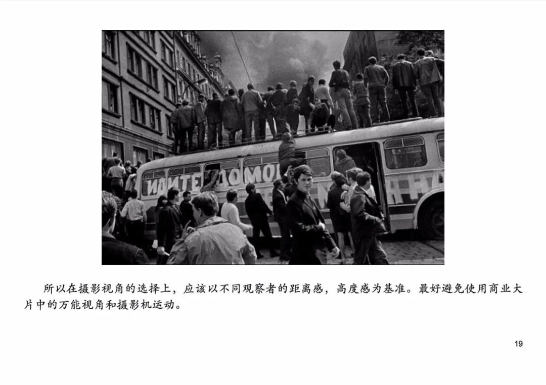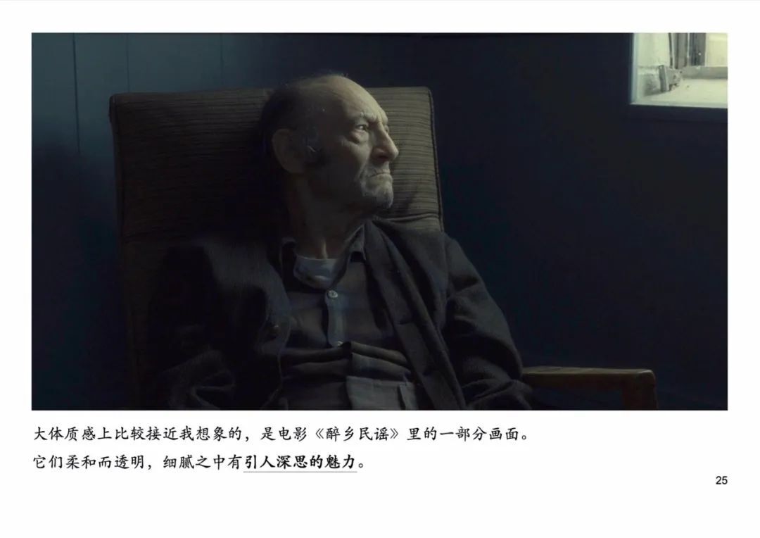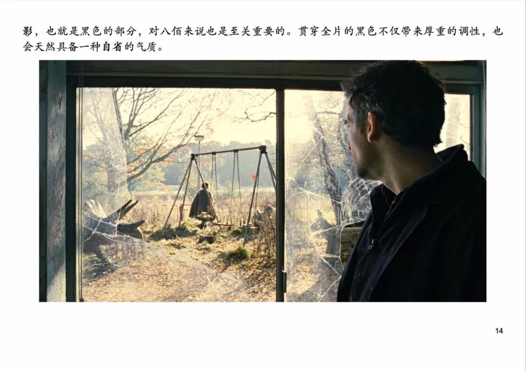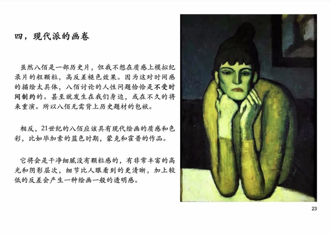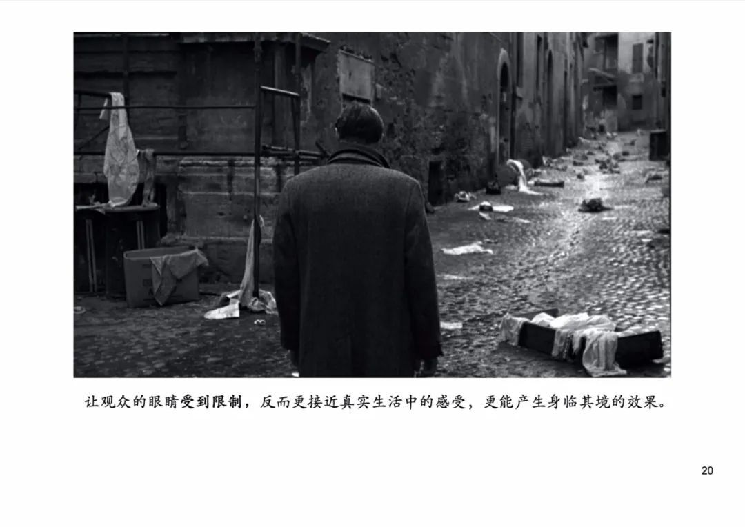 在闡述里我還介紹了攝影機(jī)運(yùn)動和視覺選擇的方法。其中很重要的一點是攝影機(jī)的參與感,不僅僅是看演員怎么演,更重要是攝影機(jī)怎么參與表演。我一直認(rèn)為攝影機(jī)也是一名演員,也在參與表演。如果只是一個記錄工具,其實會丟掉很多精彩的東西。