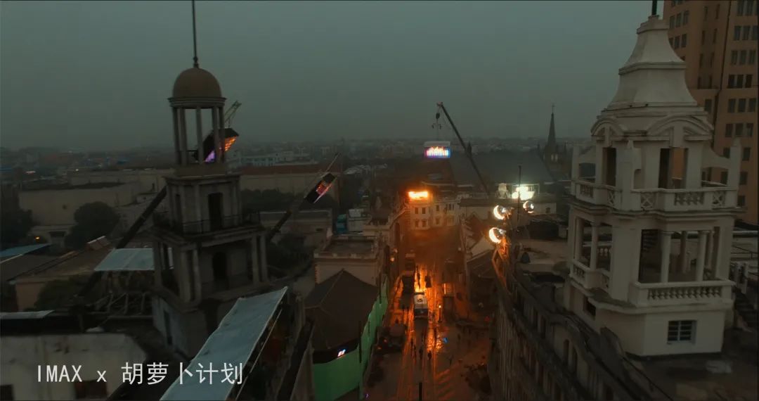 還有一點非常值得分享,“戰(zhàn)士背炸藥跳樓”這場戲的鏡頭非常難處理,之前讓我們特別痛苦,因為當(dāng)時沒有攝影機(jī)可以拍出這種效果。當(dāng)時前期做了非常多的測試,我們希望能夠去還原人眼的感覺。但非常暗的倉庫和非常明亮的外景全部清晰的出現(xiàn)在一個畫面,這對于攝影機(jī)的要求非常高,它非常考驗攝影機(jī)的動態(tài)范圍和清晰度。當(dāng)時我們測試了兩款主流的攝影機(jī)品牌,但都不符合我們的要求。最后是ALEXA IMAX攝影機(jī)幫我們解決了這個問題,在明暗對比非常大的情況下,ALEXA IMAX攝影機(jī)呈現(xiàn)的鏡頭畫面依然非常有層次感,并且清晰度非常高,也得以讓鏡頭效果在影院的呈現(xiàn)完美。我也可以說,這些鏡頭非常完美的體現(xiàn)了ALEXA IMAX攝影機(jī)的特質(zhì)。正是工具的解放,讓我們現(xiàn)場可以更自由。