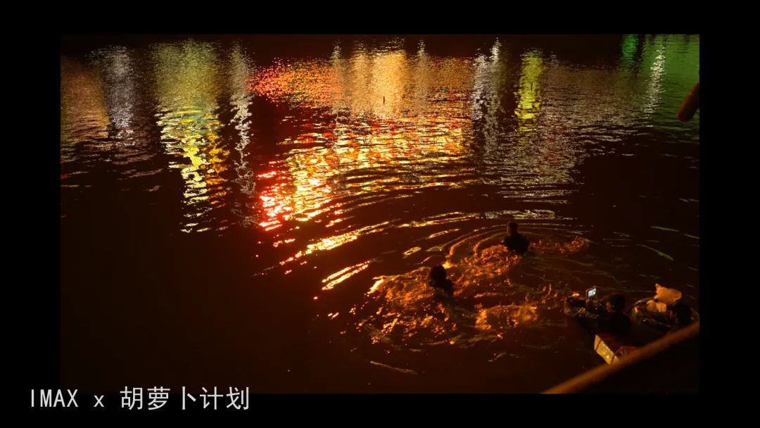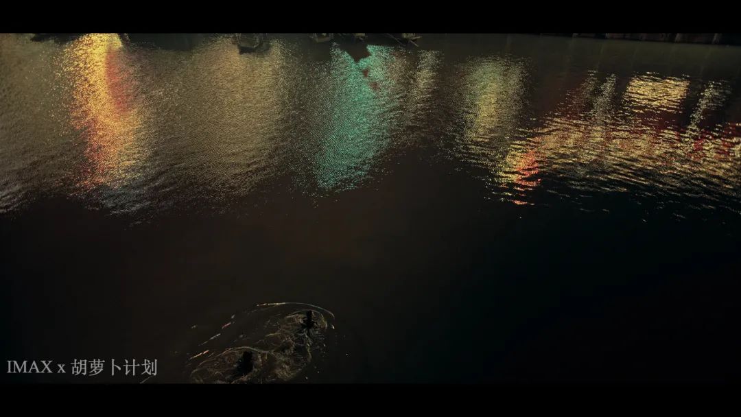 其實實現(xiàn)的方法非常簡單,采用一個搖鏡頭就實現(xiàn)了敘事。但我們放棄了傳統(tǒng)攝影棚拍攝的工作習(xí)慣,采用了真實的水道,這對演員來說挑戰(zhàn)非常大。鏡頭搖過去發(fā)現(xiàn)日本人,再搖回來,幾位主角潛回到水里,這樣就完成了我們的設(shè)想。我個人特別喜歡這個鏡頭最后演員消失在水里面的感覺,人物從亮到暗,慢慢消失在黑暗里,非常有詩意。這是我們美術(shù)指導(dǎo)林木提出的想法,所以我特別感謝他。