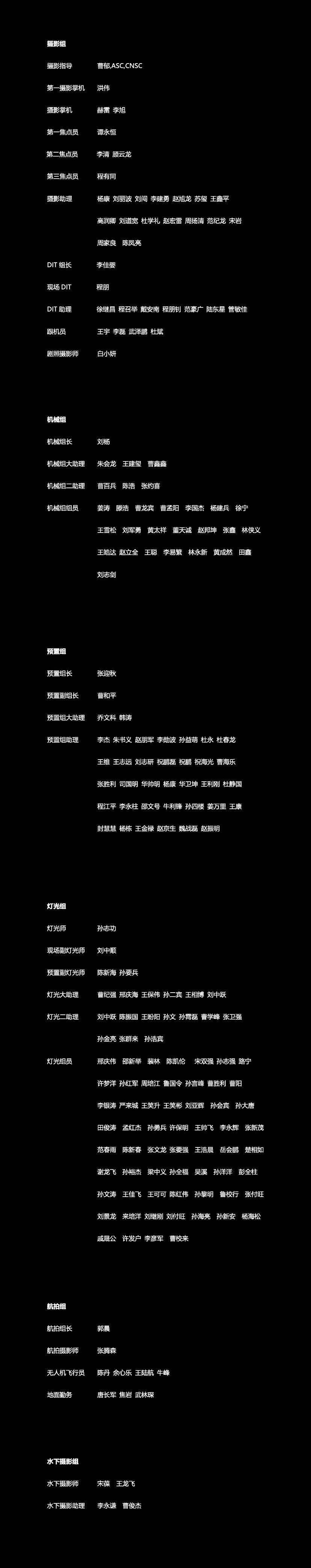 也特別感謝我們的主創(chuàng)合作者導(dǎo)演管虎、美術(shù)指導(dǎo)林木、特效總監(jiān)Tim等等,我們合在一起才可以實現(xiàn)“最黑的夜,最亮的光。”