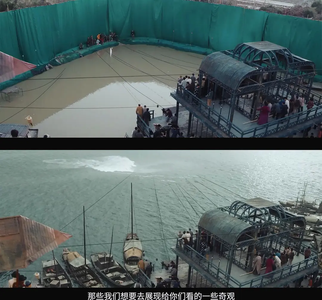 這場戲,我們做了完整的預演,因為碼頭在《河神 1》的時候已經(jīng)拍過,我們有了這些基本的數(shù)據(jù),而攝影指導也是《河神 1》的攝影指導,所以他在看到預演的時候,基本上都能知道如何下機位和拍攝。