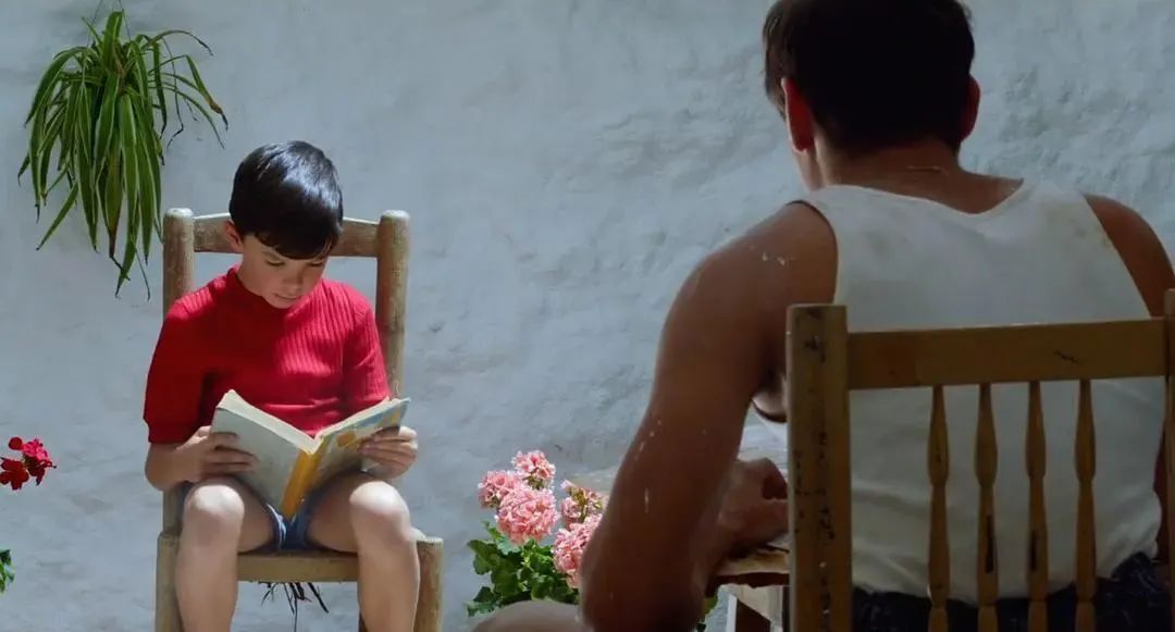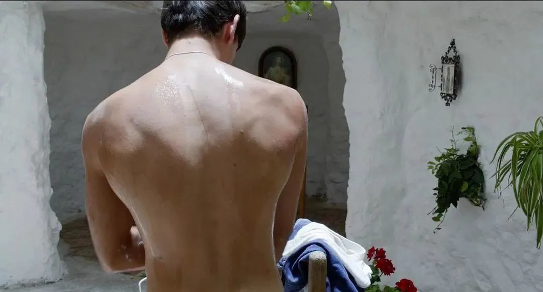 電影里還有個色彩斑駁、造型別致的柜子,薩爾瓦多每次打開它,就仿佛是掀開記憶的寶箱,里面那些彩色的小藥丸,則暗示著對痛苦和遺憾的壓制。如果說深色的成年生活是果,那淺色的童年回憶才是因,白色巖洞里一尊雕塑般健碩的胴體,陽光灑在完美的肉色上,睡眼惺忪的男孩仿佛看到圣靈降世,居然難以承受這種“美的降維打擊”,只能用暈過去來自我保護,同時也是潛意識的欲望重啟。