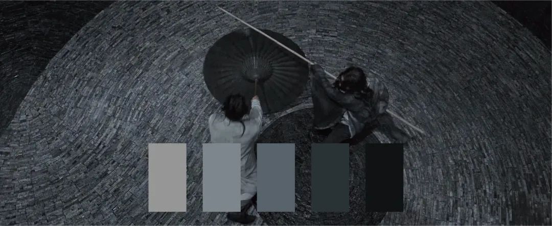 假如張藝謀按照之前的習(xí)慣,把此片也拍成金甲琉璃菊花開,敘事上沒啥影響,卻少了“以柔克剛”、“明戰(zhàn)暗襲”等基于黑白色調(diào)對比的文化解讀。細看《影》,其實也并非徹底的黑白影像,張藝謀還是保留了兩種不易察覺的色彩——肌膚的肉色和鮮血的紅色,大概唯此,才能銘記住那些年輕生命的犧牲,才算完成了權(quán)力系統(tǒng)的重啟。