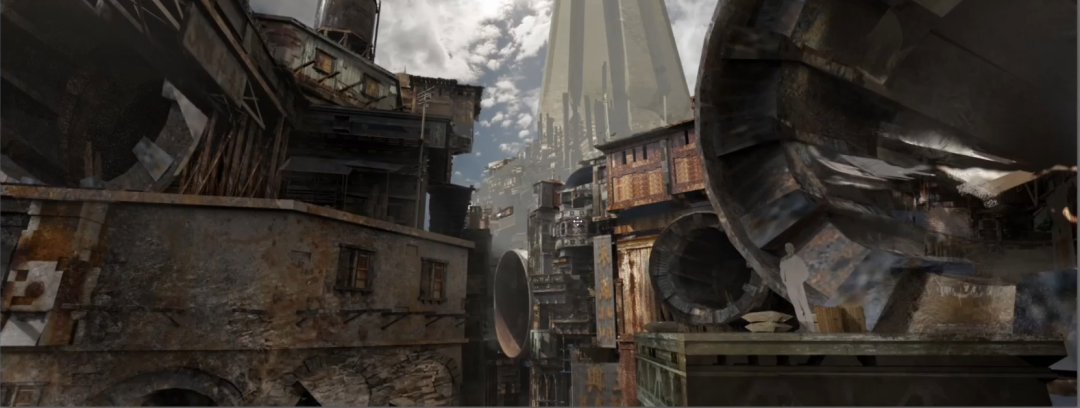 當然期間也會進行很多嘗試,先是確定大的感覺和材質,比如:是破舊一點還是像國民街一樣繁華熱鬧,還是特別的落魄臟亂差的感覺?下一步我們要推算一下比例,在創作的時候要先做一個比例上的參考,再進行深入設計。深入設計就是比如說管道再加多少,再流一些臟的水或者排放的一些氣體,體現這個地方整體更加暴亂臟的風格。
