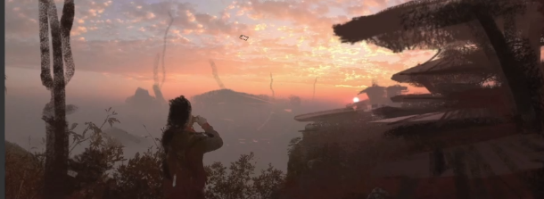 這張項目我們就用三維軟件做了一些簡單的模型的搭建,能在結構上包括光影上進行一些輔助,又可以理解為像傳統CG繪畫一樣,我們用一張底子當素材,然后在上面在進行匯總,這一步其實就是簡單做了一個材質的方案。