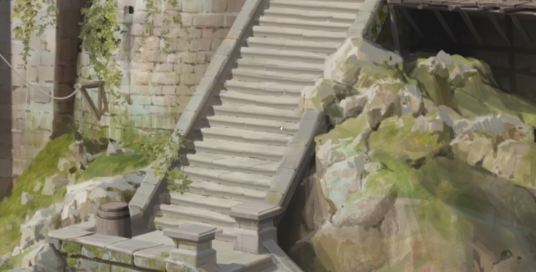 如果你仔細看,這些樓梯我畫的并不是很整齊、每個都不一樣,磚的顏色也不一樣,它都形成了不同的色彩,這種色彩的傾向性,讓我們的設計產生出更符合現(xiàn)實中的顏色變化。