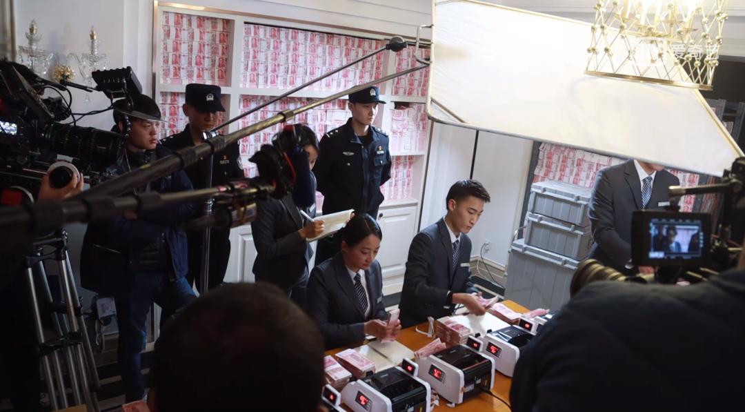 李希:ISO2500高感的低照表現很好,有幾個鏡頭非常能說明。警察局審訊的場景是在棚里拍攝的,審訊室是亮的,而觀察室是黑的,它們之間有一個可以控制透明狀態的玻璃。它們的空間都不大,不好布光也不能打燈照亮暗區,只能用現場屏幕和臺燈的光,以及審訊室映射過來的一些光線。審訊戲基本沒有人工光的參與,就是用了高感,所以索尼CineAltaV的這個低照度表現非常好。另外,年輕的三個探員在倉庫里找找那個保險箱的戲,基本上也沒打燈;正片里他們在屋子發現一屋子現金的那場戲,陳建斌老師拿著手電筒從走到倉庫里,然后燈全開。那個場景對攝影機的挑戰還挺大,從全黑到全亮的環境,在純黑的時候沒有任何人工光。第一集陳建斌老師修燈泡也是類似的環境。
