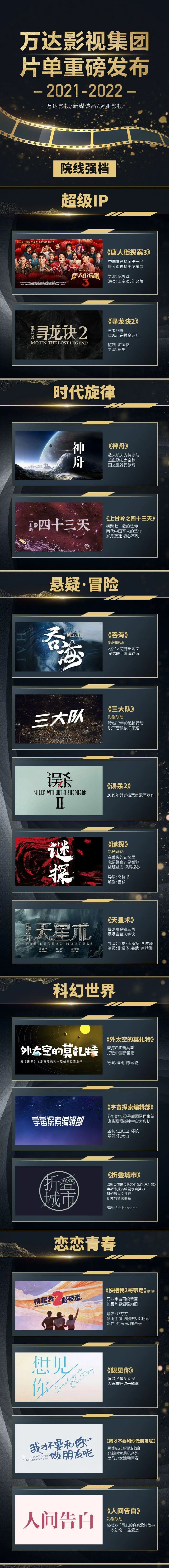 繼9月16日華誼兄弟公布年度片單后,昨日,萬達影視也公布了2021-2022年度片單。