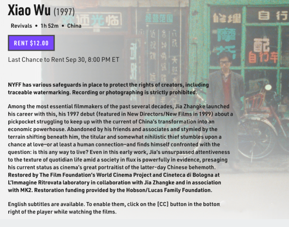 賈樟柯處女作《小武》修復(fù)版本周登陸美國(guó)林肯中心官網(wǎng)Virtual Cinema,作為紐約國(guó)際電影節(jié)的展映項(xiàng)目,可以進(jìn)行在線(xiàn)租賃觀看,本片由馬丁·斯科塞斯的“電影基金會(huì)”世界電影項(xiàng)目,Cineteca di Bologna 以及MK2等機(jī)構(gòu)聯(lián)合修復(fù)。