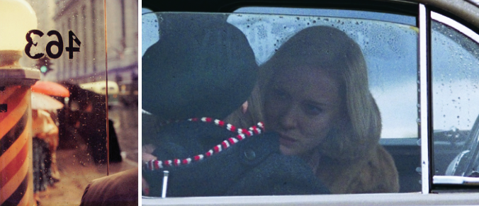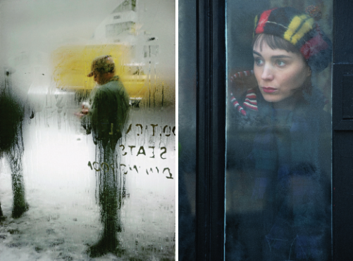 天氣元素之雨。左:索爾·雷特攝影作品;右:電影《卡羅爾》攝影師理查德·拉赫曼采用了一整套技術工藝,以獲得他設定的影像概念?!犊_爾》運用兩部ARRIFLEX?416拍攝,配合著35mm格式鏡頭,其中就包括一套Cooke?S2?Speed?Panchro鏡頭。Speed?Panchro鏡頭特殊的邊緣散焦效果,更有利于在框架構圖中凸顯拍攝主體,并且創(chuàng)造出一種肖像般的感覺。此外為了還原時代質感以及特殊的色彩分離效果,影片使用了多款柯達VISION3膠片。“膠片的色彩分離受到燈光膜和色溫的影響,與數(shù)字媒介的反應是不同的。膠片中的RGB層次,盡管微小,卻能夠創(chuàng)造出數(shù)字媒介所缺少的色彩深度感” ,攝影師這樣形容。影片最終獲得了2016年奧斯卡最佳攝影提名。影片《霓虹惡魔》(The Neon Demon,2016)講述了一個年輕女模特來到洛杉磯闖蕩時尚界的故事。《亡命駕駛》 (Drive,2011)的導演尼古拉斯·溫丁·雷弗恩(Nicolas?Winding?Refn)沿襲了他一貫的對于形式感的探索,影片并不著重構建復雜的敘事情節(jié),而是側重視聽語境的影像呈現(xiàn)。攝影師娜塔莎·布雷爾(Natasha?Braier)承認畫面深受時尚攝影師蓋·伯?。℅uy?Bourdin)和美國藝術家詹姆斯·特瑞爾(James?Turrell)作品的影響。