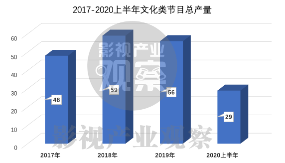 經(jīng)歷了2017年的爆發(fā),18、19年的發(fā)展,如今文化類節(jié)目的熱度似乎不及以往。大眾關(guān)注度下降的同時,整個市場的創(chuàng)作狀態(tài)也稍顯疲乏。據(jù)不完全統(tǒng)計(jì),2020上半年各大衛(wèi)視及視頻網(wǎng)站共推出29檔文化類節(jié)目,與去年同期的39檔相比明顯減少。