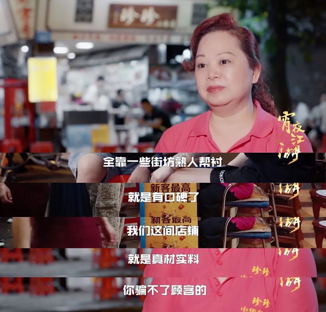 這類作品能夠備受年輕用戶追捧的另一個原因,在于制造視聽盛宴之余,也刻畫出不同生活場景下的美食人物肖像,將美食作為人與人、人與附近關系間重要紐帶的功能體現得淋漓極致。比如《宵夜江湖》武漢一集里的攤主就很有本土氣息,食客們每晚在街頭等候“燒烤婆婆”出現,能不能遇到都是緣分;霍元甲燒烤的攤主奶奶居然敢“訓斥”客人,但是生意還好得不行。當地的風土人情,每個人的生存之道都毫無保留地展現在鏡頭前,地道的宵夜和和傳奇的市井故事都值得細細品味。