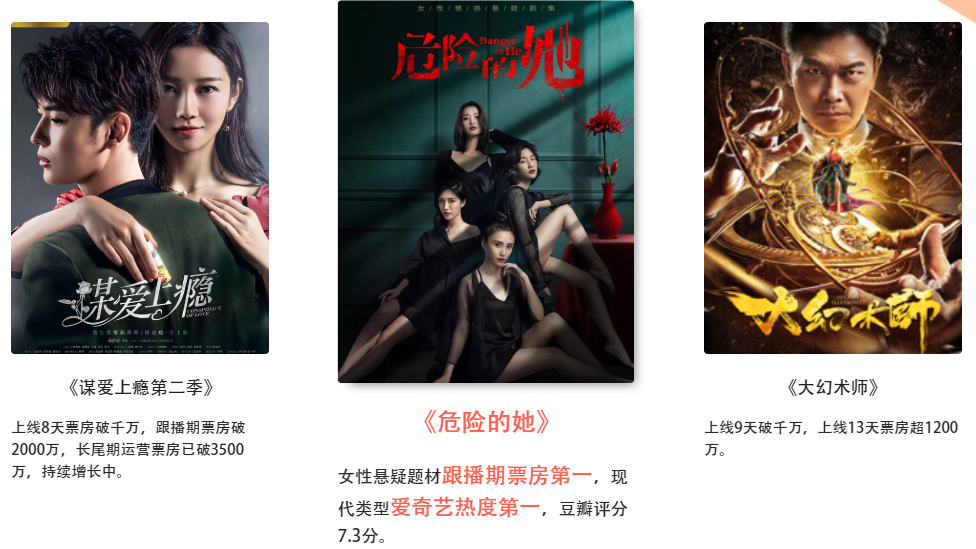 “以海報(bào)物料為例,其實(shí)宣傳海報(bào)的顏色、字體、風(fēng)格等都會(huì)對(duì)觀眾點(diǎn)擊造成影響,在項(xiàng)目上線之前,我們就會(huì)對(duì)各種類型物料進(jìn)行數(shù)據(jù)監(jiān)測(cè),通過測(cè)試找到最受觀眾歡迎的一款,劇集上線后就會(huì)以最受歡迎的海報(bào)作為主視覺,最大限度吸引受眾點(diǎn)進(jìn)來觀看,如果在觀看過程當(dāng)中出現(xiàn)變化,數(shù)據(jù)也會(huì)在云合的四象系統(tǒng)中反應(yīng)出來,我們會(huì)根據(jù)數(shù)據(jù)反饋及時(shí)作出調(diào)整,通過資源優(yōu)化配置,合理提升內(nèi)容點(diǎn)擊,提升分賬效率。”