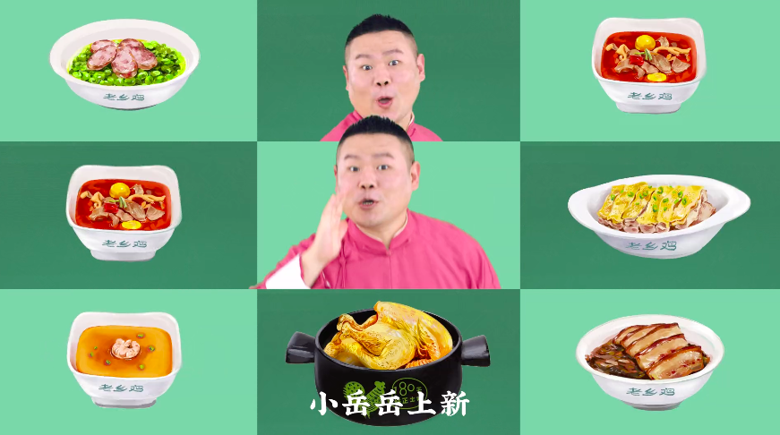 “老人小孩都愛吃,隔壁小孩都饞哭了”的老母雞們,在老鄉雞的安排下,帶著安徽的口音走進了京城,邁向了全國,甚至還靠“網絡碰瓷”碰來了一位深得消費者認可的代言人——人氣相聲演員岳云鵬。