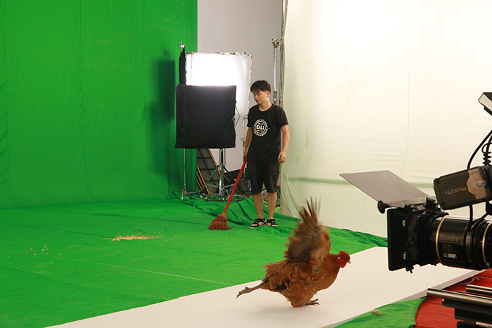 最后,這兩支有一定風格差異的片子,在一天之內拍完了,而整個拍攝過程最讓人無法操控的部分,其實是令人捉急的“雞”和過于熱情的“狗。
