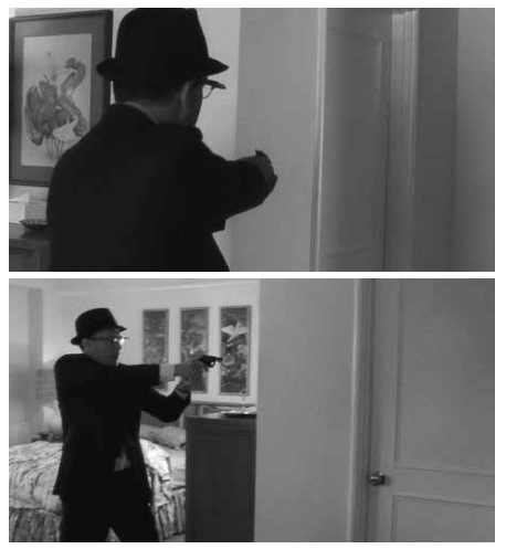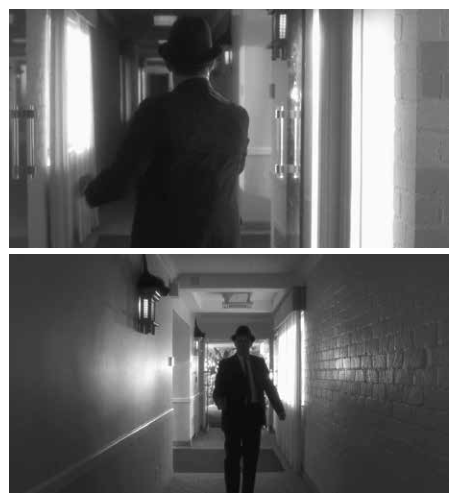 在片刻的意外之后,保持?jǐn)z影機(jī)不動,讓場景吞沒角色。切到反打鏡頭,我們看到呈剪影狀態(tài)的漢克斯朝著攝影機(jī)走來,攝影機(jī)隨之向后拉。這一向后的移動會讓觀眾感到非常不安。鏡頭再次反打切回漢克斯的背面,這時攝影機(jī)又向前跟推。一旦攝影機(jī)移動起來,在這些移動鏡頭之間切換就更容易更自然了。為了讓觀眾感到不安,在至少一個鏡頭中運(yùn)用向后拉的運(yùn)動方式。下一個鏡頭只對準(zhǔn)了槍,漢克斯向前走來,同時攝影機(jī)繼續(xù)向后移動。他開始轉(zhuǎn)向畫面左側(cè)的空間。好萊塢的慣例是,當(dāng)一位明星出現(xiàn)在一個場景中時,得讓觀眾看到他的臉,所以隱藏漢克斯的臉會產(chǎn)生一種微妙的感覺,仿佛有什么事情不太對勁。要提高觀眾的緊張情緒,可以通過從背后、低角度拍攝,或低調(diào)燈光和輪廓光來隱藏演員的臉。攝影機(jī)不斷向后移動,當(dāng)漢克斯靠近門時,他完全進(jìn)入了觀眾的視野。鏡頭稍作停頓,為的是看清門沒鎖,而且是半開著的。這與其說是一種障礙,不如說是一種邀請,我們期待漢克斯沖進(jìn)房間。在電影中,門通常是障礙,但一扇仿佛故意留出的半開的門,則是一種令人不安的邀請。機(jī)位換成房間里的角度,我們看到漢克斯突然進(jìn)入了畫面,攝影機(jī)以手持的方式快速迎向他。這個簡短但戲劇性的鏡頭帶給觀眾一種他被攻擊的瞬間感覺。鏡頭轉(zhuǎn)過來跟著漢克斯,我們看到他在一個空蕩蕩的房間里四處張望。就在這一刻,我們大家都確信會有動作場面發(fā)生了,斯皮爾伯格卻給了我們一個明顯的反高潮處理,令人驚喜。一旦你制造了緊張感,用某種形式的反高潮處理來緩解一下。這會使得緊張局勢在不久之后有機(jī)會再次出現(xiàn)。攝影機(jī)向下一甩,拍攝迪卡普里奧留下的偽造身份的痕跡。這似乎在告訴我們,他曾在這里,但現(xiàn)在已經(jīng)走了。從來沒有一個完整的全景鏡頭讓觀眾看清這個房間,這使觀眾迷失了方向。拍攝小細(xì)節(jié),而不是展示整個房間的全景鏡頭來交代場景,這樣可以迷惑觀眾。切到地板上的鏡頭展示出這個房間被匆忙清理過的痕跡,包括地板上的薯片。鏡頭切到漢克斯的腳的特寫,我們看到他踩到了一片薯片。隨即,攝影機(jī)就向上搖,展示漢克斯全身,他正在向下看看踩到了什么。這些快速切換的鏡頭的功能是增加觀眾的困惑和方向迷失感。浴室里發(fā)出的聲音讓他 180 度轉(zhuǎn)身,鏡頭切成了特寫。槍位于畫面的中央,焦點(diǎn)全是虛的,所以我們所有的注意力都集中在漢克斯的表情上。一系列快速剪輯的鏡頭和攝影機(jī)移動,如果緊跟著一個穩(wěn)定的特寫,讓我們看到角色的恐懼,這樣效果最理想。在交代了漢克斯很害怕這個信息之后,緊接著是一個從他背后拍攝的手持鏡頭,這樣我們就可以看到浴室的門了。這樣的鏡頭,或者是通過門拍,或者從一個意想不到的角度拍,都會使觀眾期待有點(diǎn)動作戲,因此它不應(yīng)該保持太長時間。當(dāng)你想表現(xiàn)角色的恐懼時,不妨讓觀眾看到他所看到的。從演員的背后拍攝可以營造一種短暫的、易受傷害的感覺。下一個鏡頭也是手持的,展示漢克斯一邊命令里面的人出來,一邊走向浴室的門。我們不希望看到的就是迪卡普里奧冷靜地打開門,但他確實(shí)這樣做了,然后還往角落里探了一下頭。他面對漢克斯,抬起手用手指指著他,這一幕令我們以為他會中槍而畏懼。這場戲很長,其余部分也是以類似的方式進(jìn)行的,不斷地建立和化解觀眾對危險的預(yù)期,這樣我們就會一直焦慮,直到最后。如果符合故事的設(shè)定,不妨表現(xiàn)一個角色始終非常平靜,而另一個角色則處于崩潰的邊緣。這樣的對比會使人猜不到這場戲?qū)⑷绾谓Y(jié)束,這就造成了持續(xù)的懸念。在此基礎(chǔ)上,作為一名攝影師,這三種常見的攝影機(jī)運(yùn)動將有效地幫助你建立起場景中的懸念感。通過主觀視角上的慢慢推近,模仿主人公慢慢向威脅靠近的感覺,能夠釋放出巨大的焦慮和不安感。有時這種鏡頭也會通過拉遠(yuǎn)的方式來呈現(xiàn),以表現(xiàn)主人公逃離威脅。兩者的原理是相同的。當(dāng)被實(shí)在的背景所包圍、保護(hù)的時候,我們會更有安全感。而將主人公放在空曠的、危機(jī)四伏的空間中,則會使他們看上去弱小而無助。加入一些在角色身后發(fā)生的行動,也會取得相似的效果。比起用正面鏡頭暴露角色受到的威脅,看不見的威脅有時更加令人不安。在畫外空間發(fā)生的未知讓觀眾的緊張感一步步飆升,直到懸念的高潮時刻才揭露鏡頭的另一端到底是什么。聲明:轉(zhuǎn)載此文是出于傳遞更多信息之目的。若有來源標(biāo)注錯誤或侵犯了您的合法權(quán)益,請作者持權(quán)屬證明與本網(wǎng)聯(lián)系,我們將及時更正、刪除,謝謝。