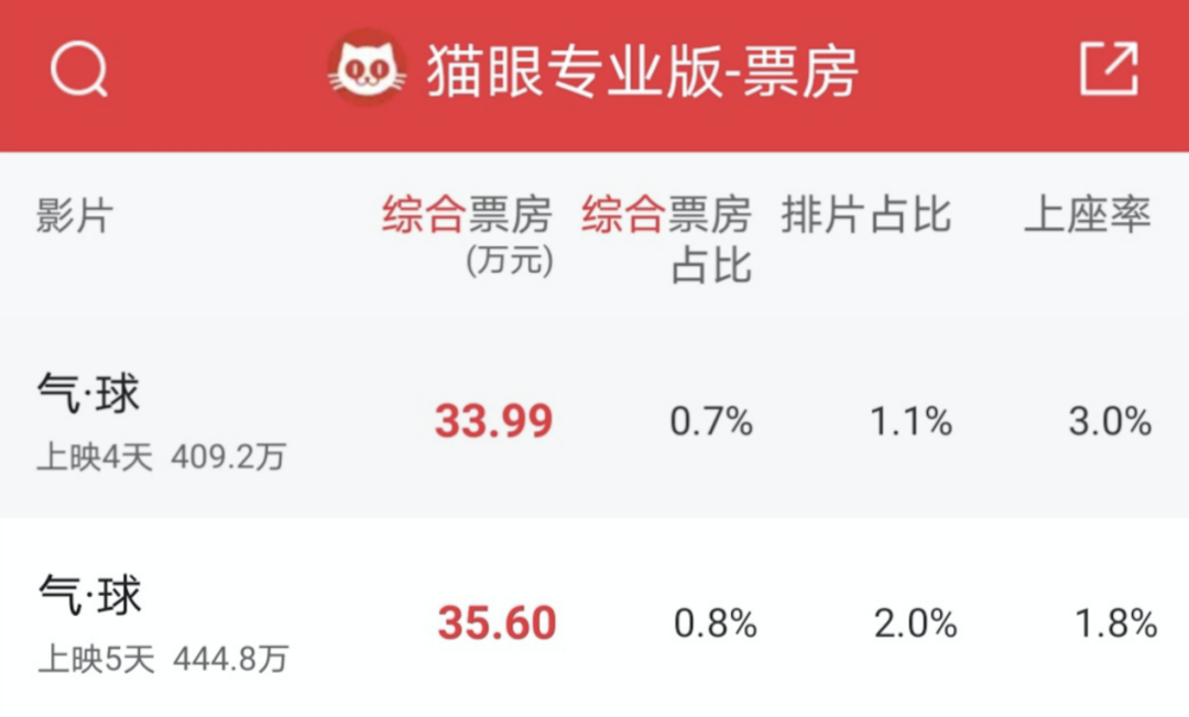 導演發聲后,影院迅速作出反應,次日,《氣·球》的排片「升至」2%,但票房仍在30萬左右徘徊。