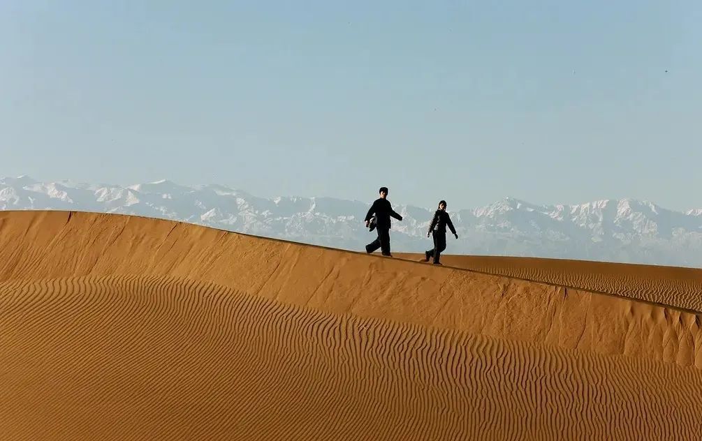 正因有著類似種種細節,我們斷定,膠片雖被埋入沙漠不見蹤跡,但《一秒鐘》并沒有埋沒歷史。它顯然作出了一次特殊環境下的特殊嘗試:如何記住電影,又如何用電影記住歷史。影片結尾,張九聲向劉閨女(劉浩存飾)的方向回望,后者手中旋轉燈罩,陽光穿過膠片,恰似電影正在放映,前者則在風吹過沙漠形成的條條縱向褶皺的背景上被驅趕著向前行進(讓人想起《鯨魚馬戲團》中相似的段落)。二人似乎恰好拆解了電影(movie)作為現代藝術的起始和原點——1872年英國人愛德華·慕布里奇拍攝的24格跑馬。或許,《一秒鐘》還不足以被稱為“24格的真理”,不過,它無疑給了我們珍貴的雙重啟示:一次對中國現代歷史的駐足回望,一次對已經死去的膠片電影(film)的駐足和回望。