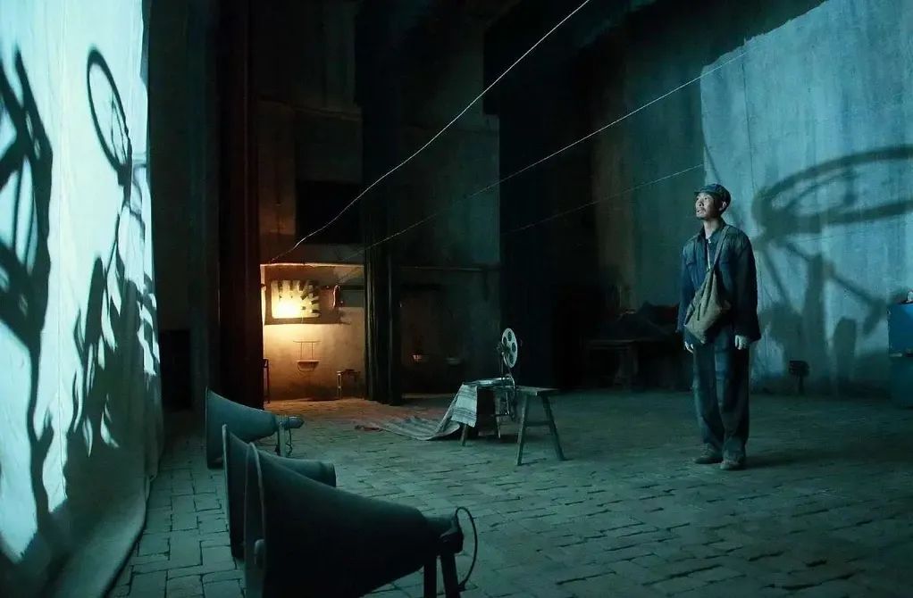 這里,關于權力的荒誕和悖反被展現得淋漓盡致:范電影控制著當地的文化命脈,緊張的沖洗、蒸餾(很難不令人聯想到張藝謀的另一部作品《活著》中大煉鋼鐵的場景)、擦拭、吹干的整個流程,表面上看頌揚了革命群眾集中力量辦大事,其實無非是對一個“人禍”的補救,每個人都在替一個錯誤買單,而這個錯誤最終還被轉嫁了,真正應該被追究責任的人始終把持著權力(不僅如此,革命群眾為了保住自己可以看電影的“小特權”,也罔顧事實犧牲了楊河)。隨后我們發現,范電影也并非全然無所顧及,其對保衛科和對張九聲的畢恭畢敬本質上是一回事,都是對暴力的臣服。簡而言之,這是一個不存在公正和法律的小世界,以暴力為終極形式的權力主宰著人們的行為。