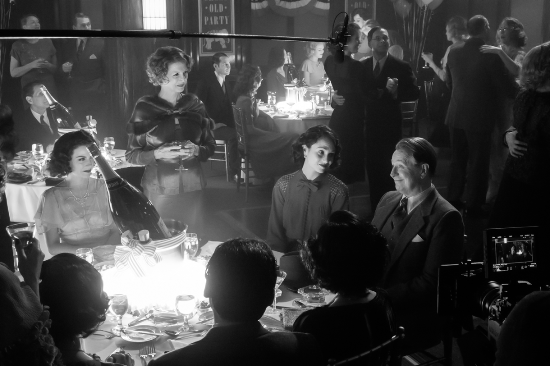“我對這場戲最終的效果很滿意,并且我們并沒有使用太多的畫外光源。”梅塞施密特補充道,由于一個在非洲進行拍攝的項目緊湊的行程,他不得不以比預期更少的準備時間投入到《曼克》的拍攝之中,但他仍然為團隊制作了一個參考集,里面囊括了從純藝術繪畫到街頭攝影的廣泛內容。“就是一些充滿靈感的圖像——并沒有什么特別具體的東西。”芬奇對參考集的反饋非常關鍵。“當你問他問題的時候,他總是那么有想法,”梅塞施密特說。“你得到一個立刻的反饋。他馬上就會說’這個可以。這個我不想要。’”到達洛杉磯之后,梅塞施密特的第一站就是Burt的辦公室。他需要去那看看場景設計的方案。“電影攝影師需要做出的很多決定,都是出于非常實際的考慮——在物理條件限制的情況下,我們必須要完成的哪些事情。我們可以在哪里放機器,又可以在哪里放燈。”大衛·芬奇的新作《曼克》已蓄勢待發,目前在進行最后的聲畫同步工作,即將完成一個最終的統一版本。
