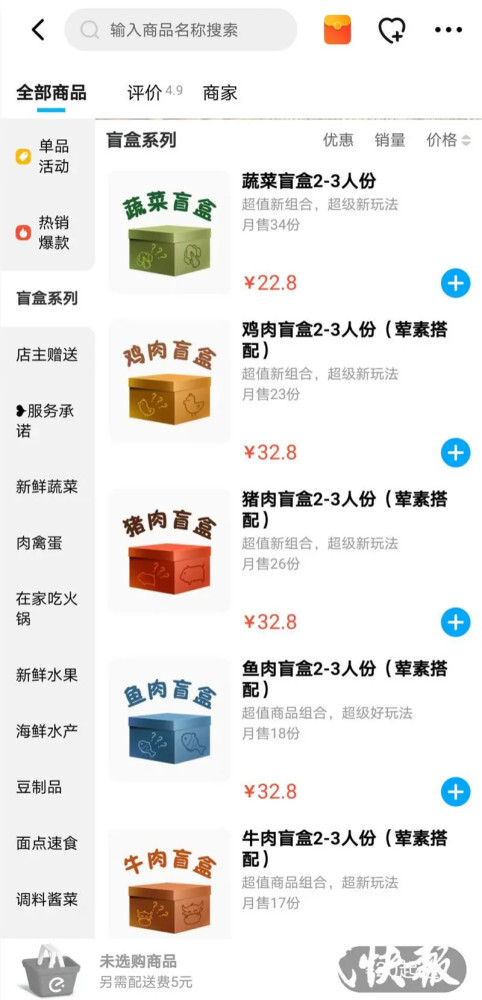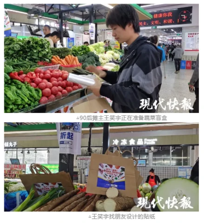當(dāng)“吃什么”成為很多人每天困擾的頭等大事的時(shí)候,90后攤主在線上推出了“蔬菜盲盒” —— 每個(gè)品類的份量在 2~3 份,價(jià)格在 20 元至 40 元之間,堪稱選擇困難癥的福音。