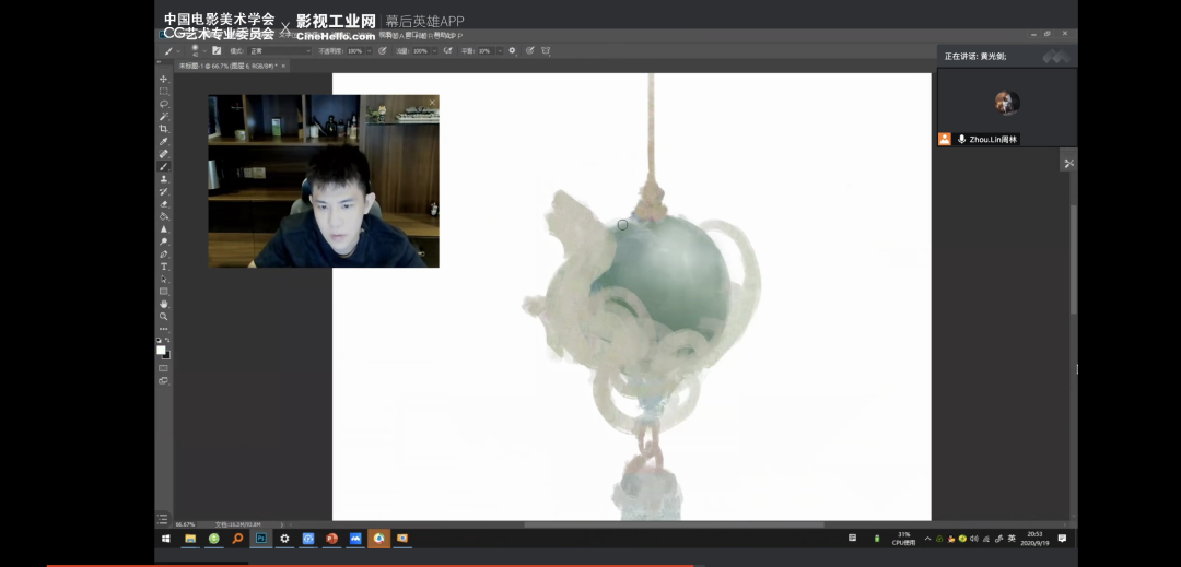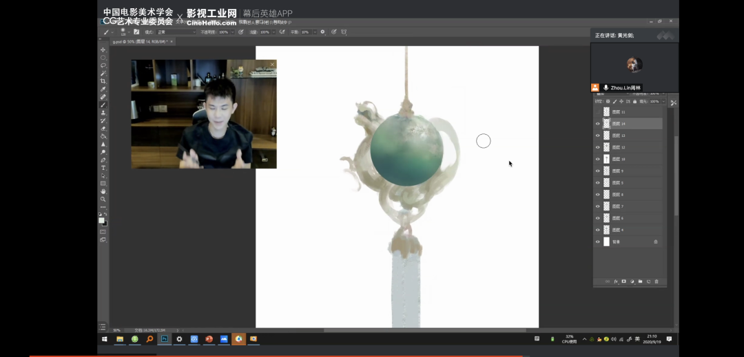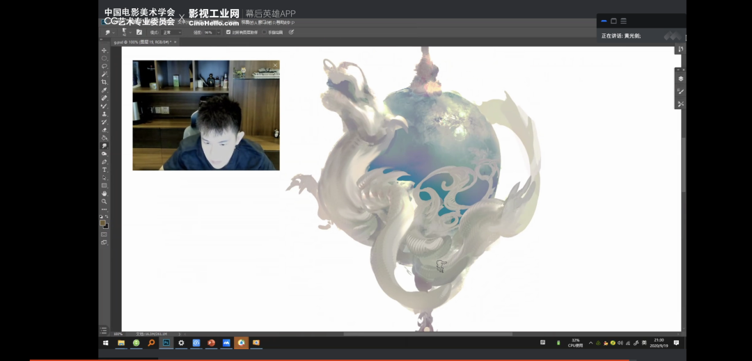我畫畫的流程不是先畫線稿再畫色稿,我是沒有線稿依托的,主要靠靈感引領。我會一邊細化一邊造型,因為大家聽了剛才我的理論會發現,線稿造型只是我整個節奏安排中的一個手段而已,我還要通過色彩和造型,通過光影去安排視覺節奏。