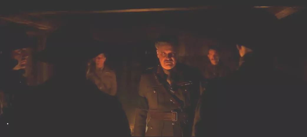 身居高位,在影片中有一段片段據說后期沒有加上:將軍在給男主、男二分配完人物的時候回到桌前開始吃下午茶,可見他對兩個士兵的輕視和不屑。