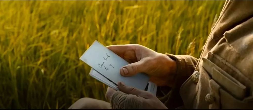 4、男主進德軍戰壕的時候盯著一張照片看了好半天,結尾處才呼應他拿出自己的照片,原來他也有幸福的家庭。照片后面寫著“Come back to us”,是他活下去的動力。中段他在法國女人那里與小嬰兒的有愛互動,也是有家庭的男人的寫照。
