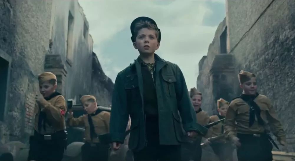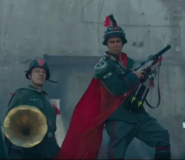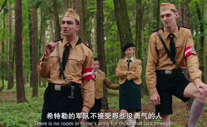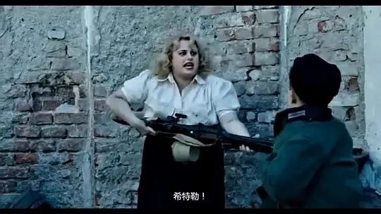 號稱為國家生了18個男孩的女秘書,則戲劇性地成為“困獸猶斗”的代表。她不但把孩子變成人肉炸彈,還差點害死不想打仗的喬喬。在第三帝國宣傳機器的洗腦下,她已經徹底喪心病狂。最后關頭,她甚至抄起一挺MG機槍,殺向硝煙彌漫的戰場……