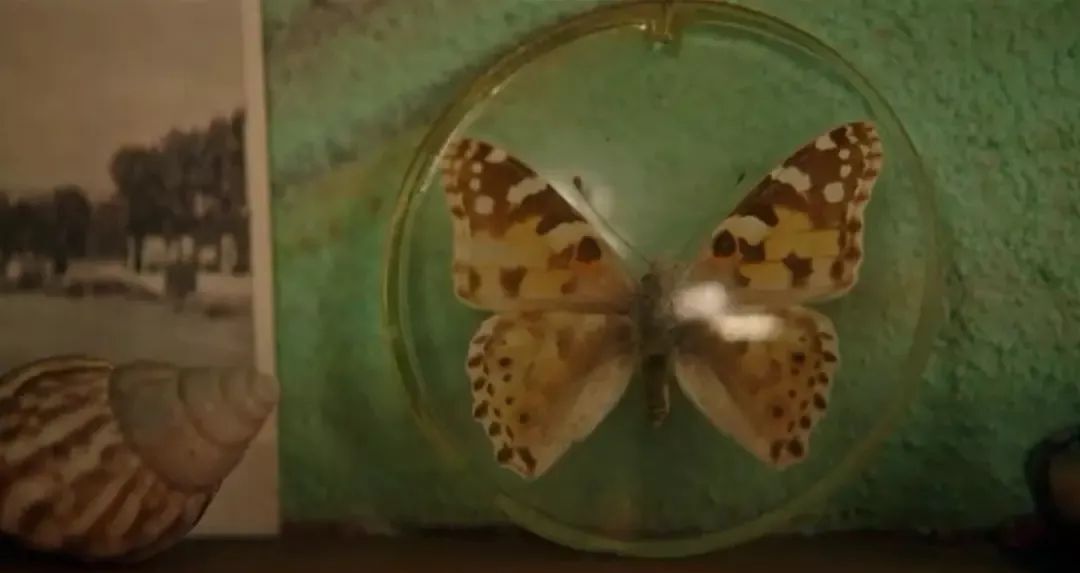 ①有一個鏡頭,蝴蝶被放在標本盒中,這個蝴蝶代表著束縛、了無生氣、囚籠,正好對應了艾莎的存在