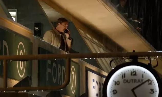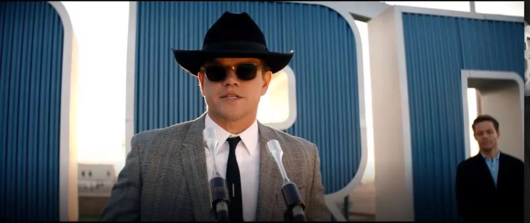 ?色彩:灰藍(lán)調(diào)的“福特”標(biāo)志牌和邁爾斯的灰藍(lán)條紋衣服顯得十分相似