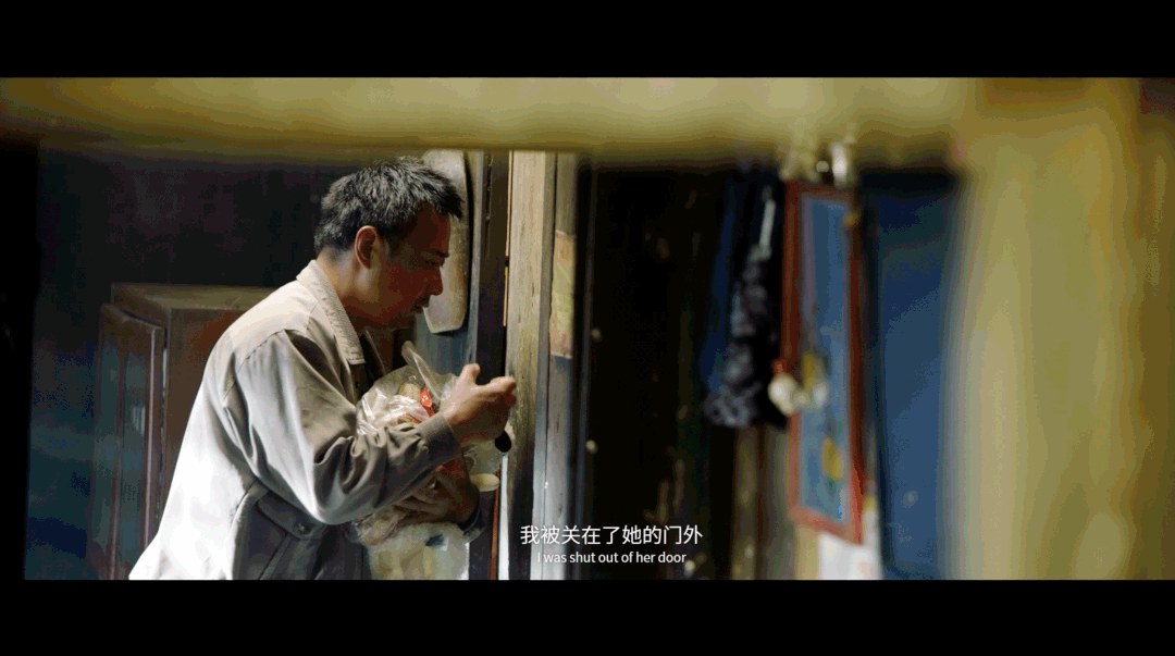 片中滿臉滄桑的父親外出務工多年后回到魂牽夢縈的家,看到母親年邁力衰,為不能在她身邊盡孝心存愧疚。他期待女兒叫一聲爸爸,卻發現女兒對遲來的父愛心存隔閡,為此尤為失落。面對此景,父親開始反思自己務工的決定是否正確,人物內心的矛盾盡顯。這也暗示著一部分外出務工父母的心聲。