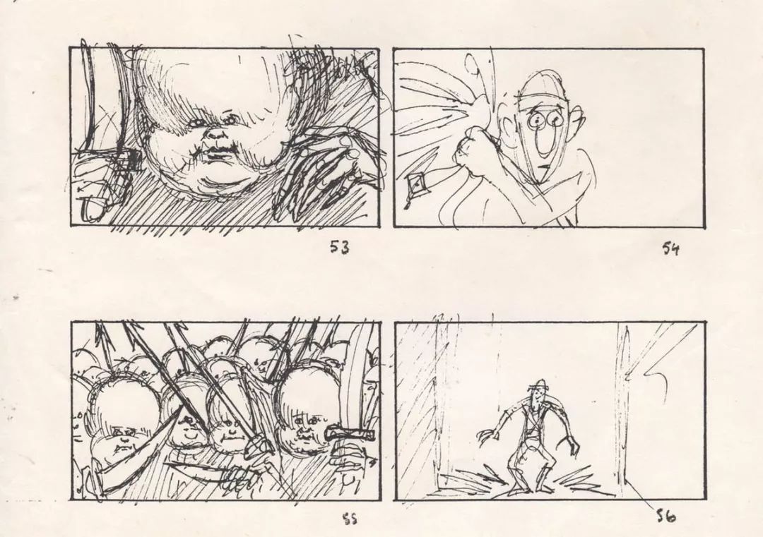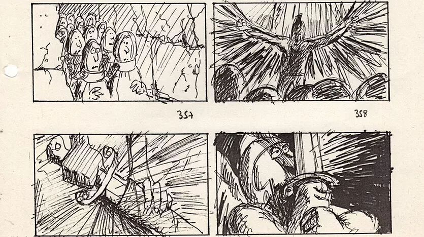奇幻黑色喜劇《格林兄弟》的導演特瑞·吉列姆從小就展露了繪畫天分。大學畢業后,他在哈維·庫茲曼辦的雜志《Help!》中從事了三年的寫作設計繪畫工作。以下是他為科幻電影《妙想天開》繪制的故事板。