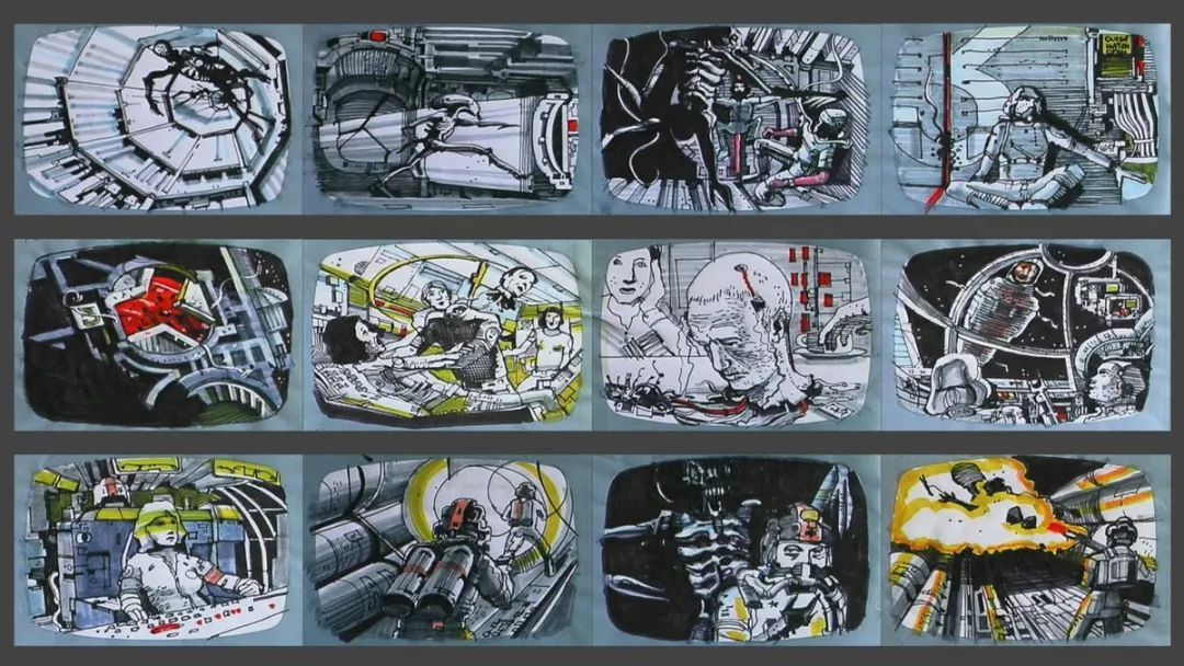 在繪畫想象力和表現力上登峰造極的導演當屬雷德利·斯科特,他在科幻電影《異形》系列上繪制了許多概念性的故事板。當然《銀翼殺手》是斯科特更為經典的作品,里面有賽得·米德(Syd Mead)為這個未來反烏托邦世界創作的令人印象深刻的設計,也有斯科特的御用場景畫師舍曼·拉比(Sherman Labby)為該片繪制的精細故事板。但他們都聲稱在創作前收到了斯科特提供的許多具有發展潛力的粗略故事板草圖,他們親切地稱之為“雷德利圖”。