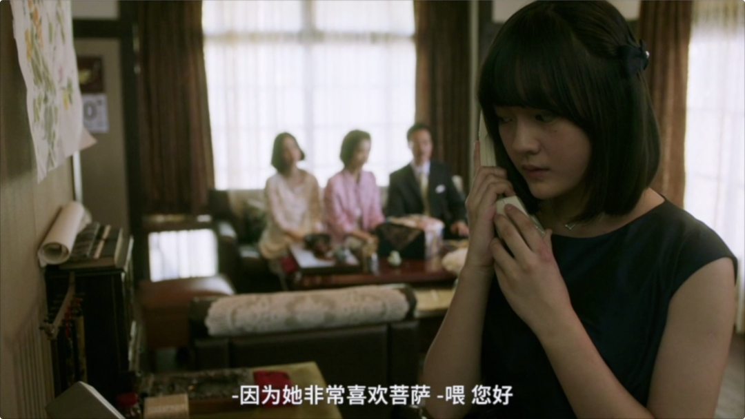 另外這個片段中還有一個小動作,就是有一段OS對白,因為妹妹偷看姐姐,姐姐怕被妹妹講出來,所以講話的節奏變成是很重要的設計,原本的節奏是1、2、3,我在2跟3之間停一拍,大家就想她會不會講出來,形成一個張力之后,才松口氣知道沒事,因為它沒有對嘴的問題,我們可以有個機會改變節奏,可以讓這個事情更有戲劇張力,這些東西是我們不停尋找,了解劇情、了解每個演員的個性,你可以做這些轉變來增加戲劇的張力。