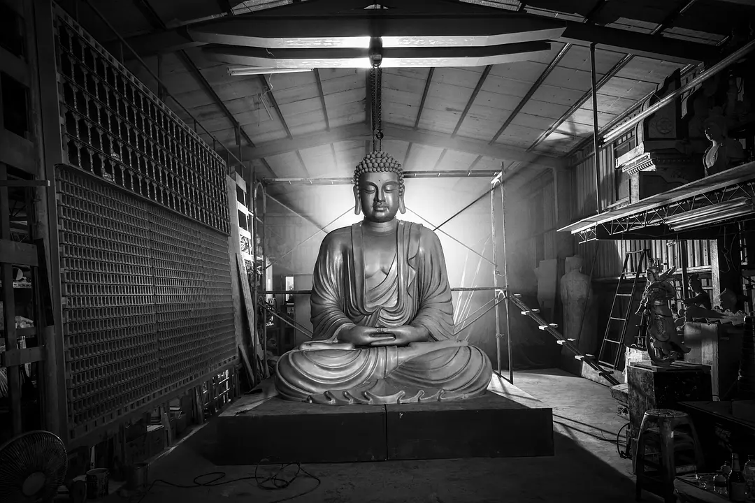 還有一種狀況是現場的某些道具是假的,所以需要Foley重做,聽起來像真的東西,或可能道具不是假的,但你想改變它,舉個例子是《大佛普拉斯》的佛像,拍攝的時候佛像是塑膠材質,但如果我們用了塑膠聲,這個電影的好看度會差一些,所以我們就決定把它做成銅的聲音。困難度來了,這么大一個東西,我怎么做出一個銅像的感覺?它有一定的厚度體積,也不能用音效資料庫現有的素材,因為它有很多表情,比如像是頭像沒吊好,掉下來讓旁人震聾的聲音,最后肚子里發出的聲音更難,更沒辦法用音效剪接來制造出敲打的聲音,那是一個人躺了好幾天,在里面醒了就敲擊求教,而且聽起來不是一個自然發出來的聲音,所以在設計的時候,就想應該怎么做才能有這樣重的質感。