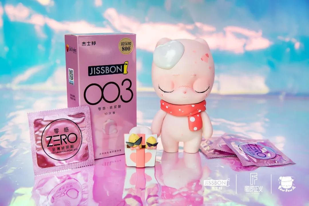 聽說,這是杰士邦聯合萌即正義工作室,聯名開發的潮玩公仔,會作為限量獎品發放給消費者。看來為了助力推廣其零感003玻尿酸產品,杰士邦也是拼了,都進軍潮玩界了。