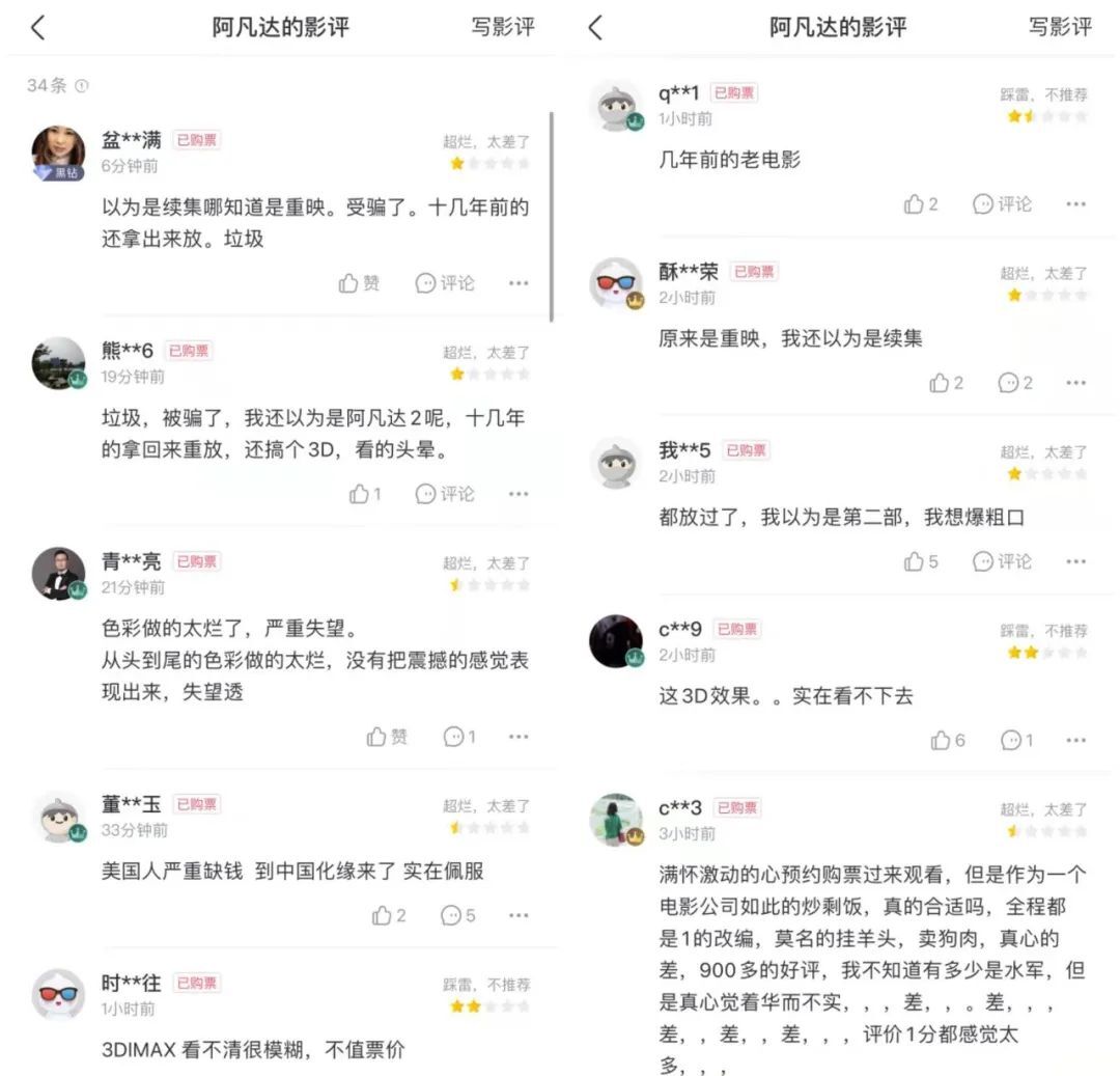 當時的新聞報道還有一些觀眾,因為發(fā)現(xiàn)不是《阿凡達2》,給重映的《阿凡達》怒打一星。這些連自己去看的是什么電影都不知道的人,真是叫人哭笑不得。之前,有媒體問,如果《阿凡達》重映,會不會破掉《復仇者聯(lián)盟4》的票房紀錄。“必須滴!我們給它們一點時間慶祝,讓我們慶祝人們還會走進電影院?!?/span>昨天《阿凡達》重映首日,毫無意外地超越《李煥英》,拿下內(nèi)地單日票房冠軍。從《復聯(lián)4》搶回“全球票房第一”,只差最后小步了。看到《阿凡達》即將再創(chuàng)票房歷史,一些雜音忍不住,酸溜溜的醋味四溢。“想賺錢想瘋了,人傻錢多的還是不少的?!?/span>“腦子壞了,國產(chǎn)電影不支持,支持國外的而且還是過時的?!?/span>我想,罵它炒冷飯之前,可以看看有沒有3D國產(chǎn)科幻電影出來單挑。更何況,隨著中國電影市場的擴大,國產(chǎn)電影的特效技術(shù)也逐步趕上好萊塢。“中國電影人不要妄自菲薄,輕易地流露出文化的不自信。想像力和創(chuàng)意的差別是由文化差異決定的,不用一驚一乍。假如驚詫于技術(shù),我們可以用自己的創(chuàng)意和好萊塢的技術(shù)合作,技術(shù)沒有國界?!?/span>聲明:轉(zhuǎn)載此文是出于傳遞更多信息之目的。若有來源標注錯誤或侵犯了您的合法權(quán)益,請作者持權(quán)屬證明與本網(wǎng)聯(lián)系,我們將及時更正、刪除,謝謝。
