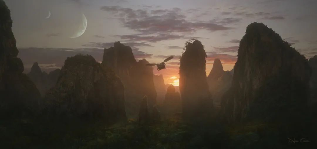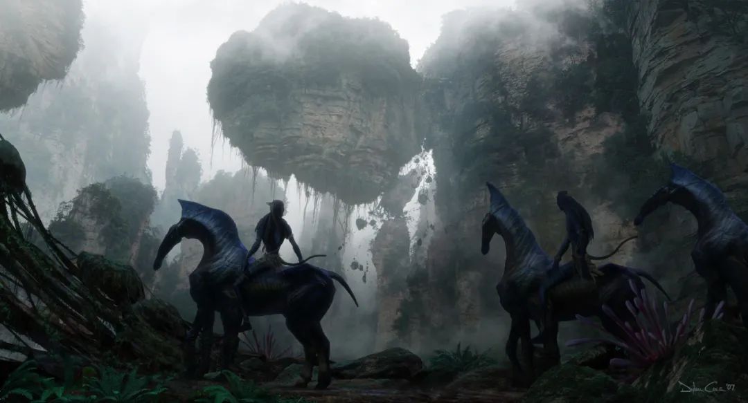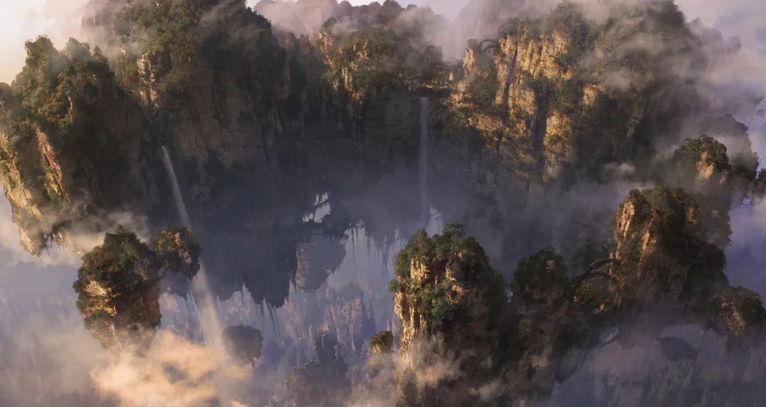 里克·卡特(Rick Carter)和羅伯特·斯托姆伯格(Robert Stormberg),兩人是本片的美術指導,憑借本片獲得第82屆奧斯卡藝術指導獎項。剛開始讀完劇本時,所有的設計師都非常激動,因為看到了在設計上的巨大可能性,有機會能創造出獨特的新東西。但是他們遇到了第一個難題,怎樣可以創造出有外星感的世界?早期的設計有賴于里克·卡特和羅伯特·斯托姆伯格共同確立了潘多拉世界的設計基調,羅伯特繪制的全景圖更是為所有設計師提供一個絕妙的視覺形象,營造了一個熟悉又陌生的外星世界。迪倫·科爾(Dylan Cole)是另一位好萊塢的頂尖數字繪景師,擅長遮罩繪畫和概念設計,參與過《指環王》、《愛麗絲夢游仙境》、《創:戰紀》、《夜魔俠》等電影。在電影中的哈利路亞山場景里,有非常原始的景觀,雄偉嶙峋的高山、磁力場環形結構、巨型懸浮山等。為了用這些科幻元素營造真實感,迪倫·科爾研究了中國不同地區的景色,如桂林、張家界的喀斯特石灰地貌。此外還參考了南美叢林,委內瑞拉地區的特普伊和天使瀑布等。