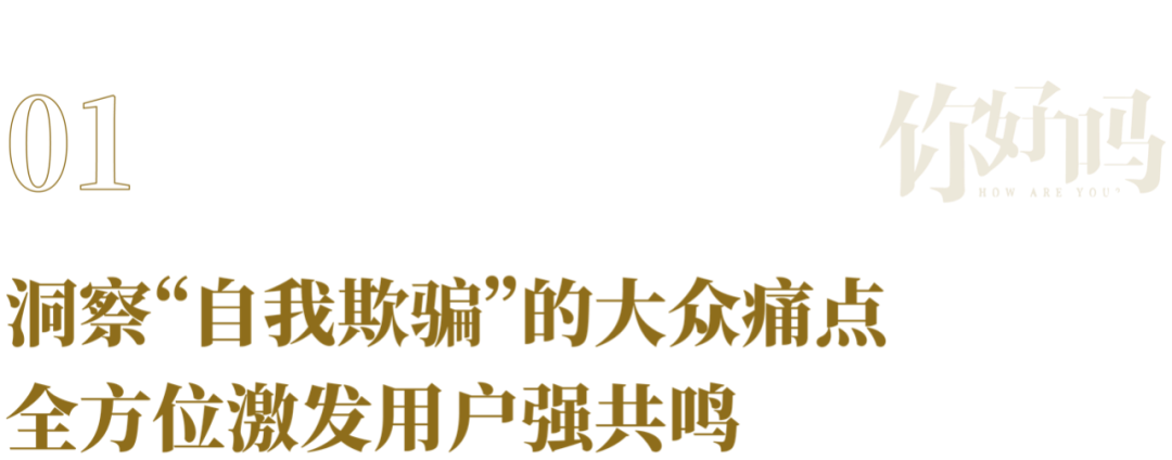 也在前兩層“巧勁”的共同發力下,把“自我欺騙”這一洞察能引發的共鳴感推向最高點,并通過視頻末尾的總結文案傳遞了一波正能量。