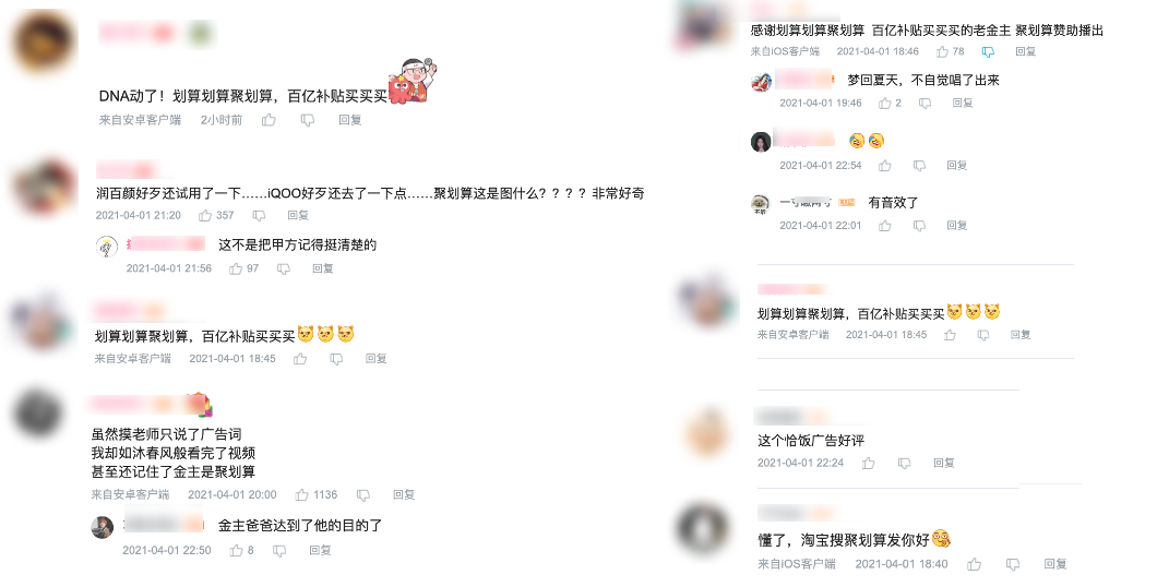 可以說,聚劃算這三重巧勁兒用得不僅恰到好處,還帶有“意料之外、情理之中”的意味,既不生硬、又夠直觀地給用戶打造了一份愿意在愚人節分享討論的優質內容。共鳴感拉滿的同時,也無形地增強了大眾對品牌的好感度。